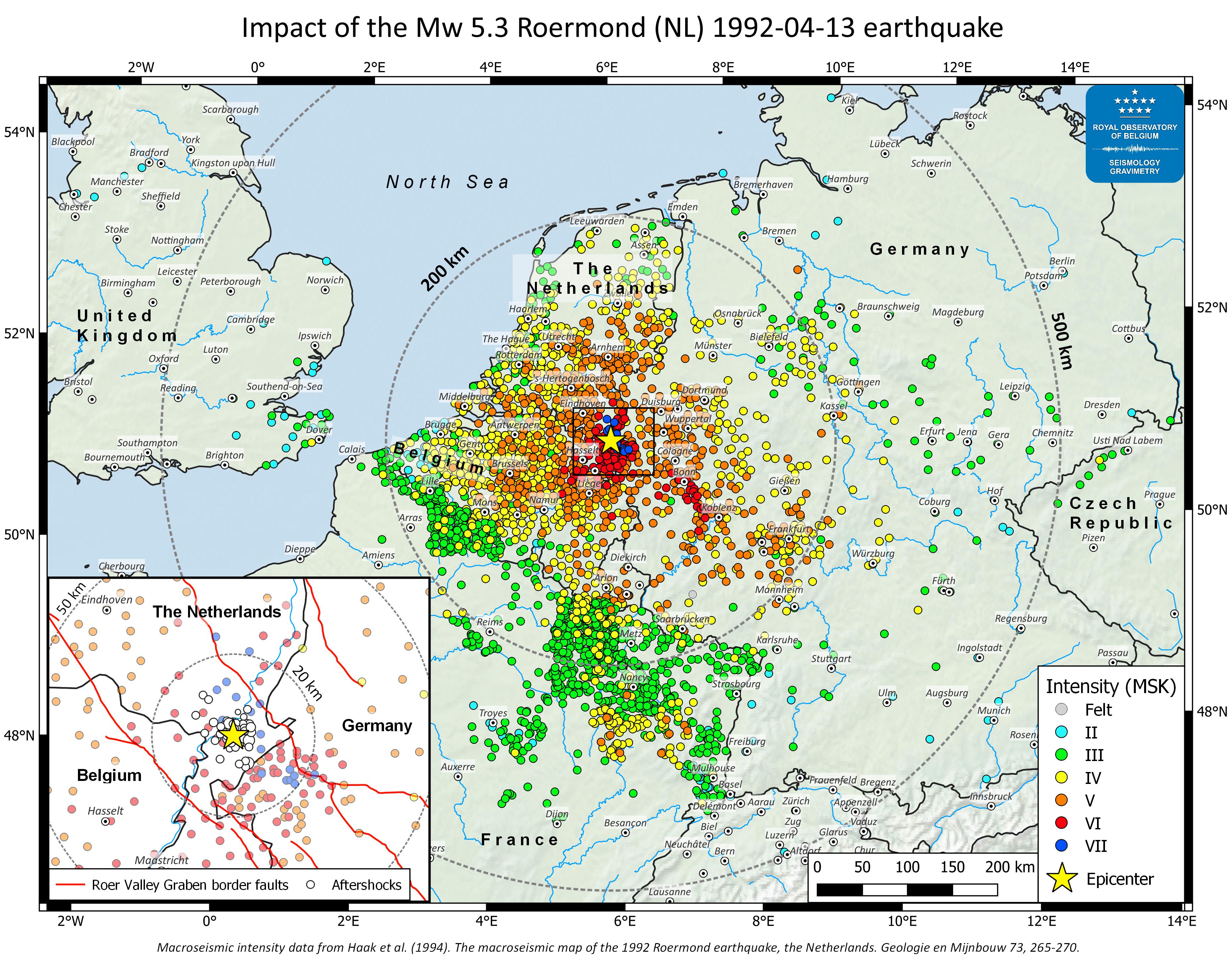 1992: An earthquake with a magnitude of 5.8 on the Richter scale strikes Roermond (Netherlands). Felt strongly throughout Belgium and parts of Europe, it remains one of the most significant earthquakes in the region's recent history.